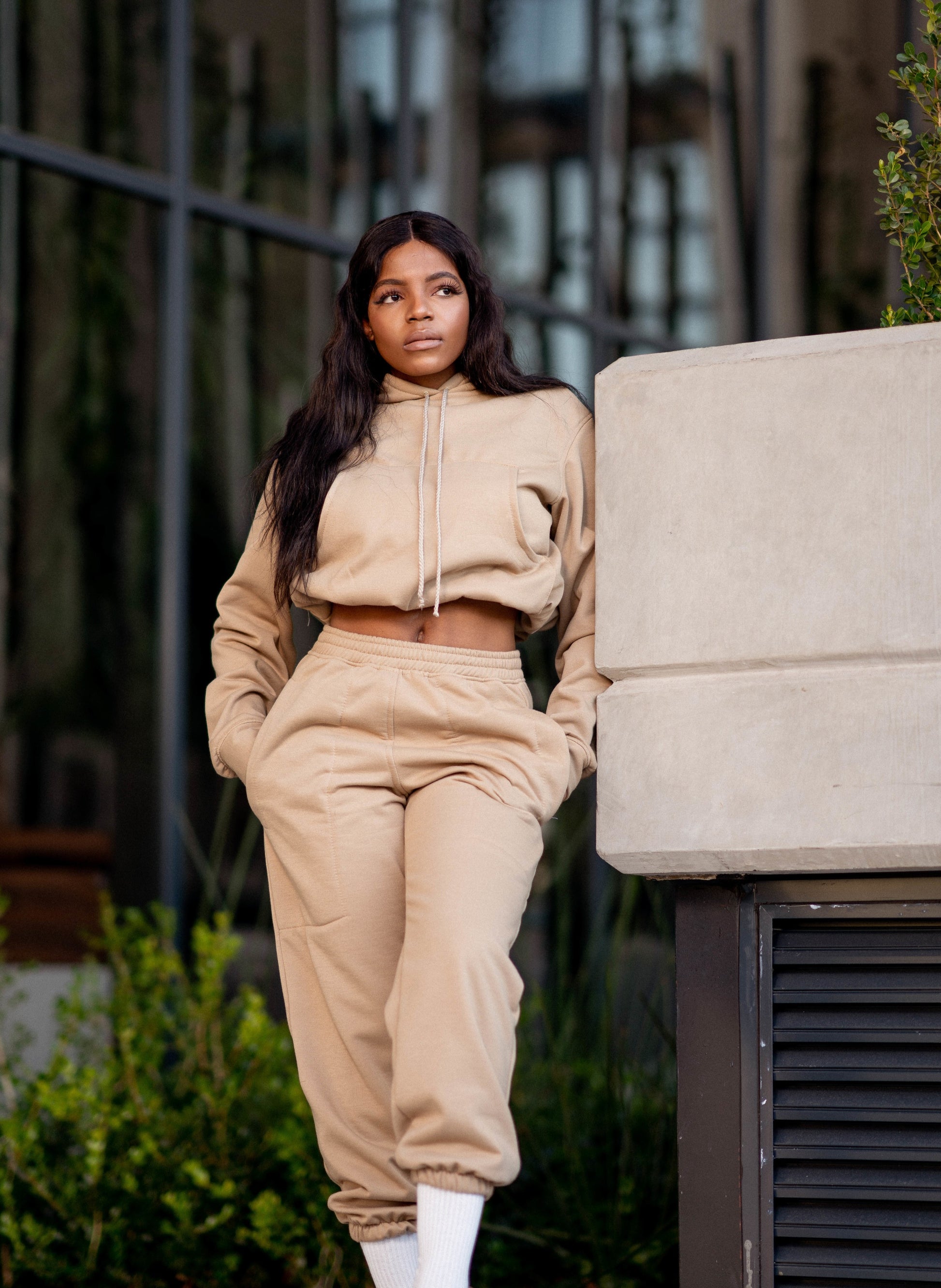 Sweat season is here. These sweats feature soft material with an adjustable drawstring . Pair it with sneakers or high heeled boots, black rectangular sunglasses and you're good to go
