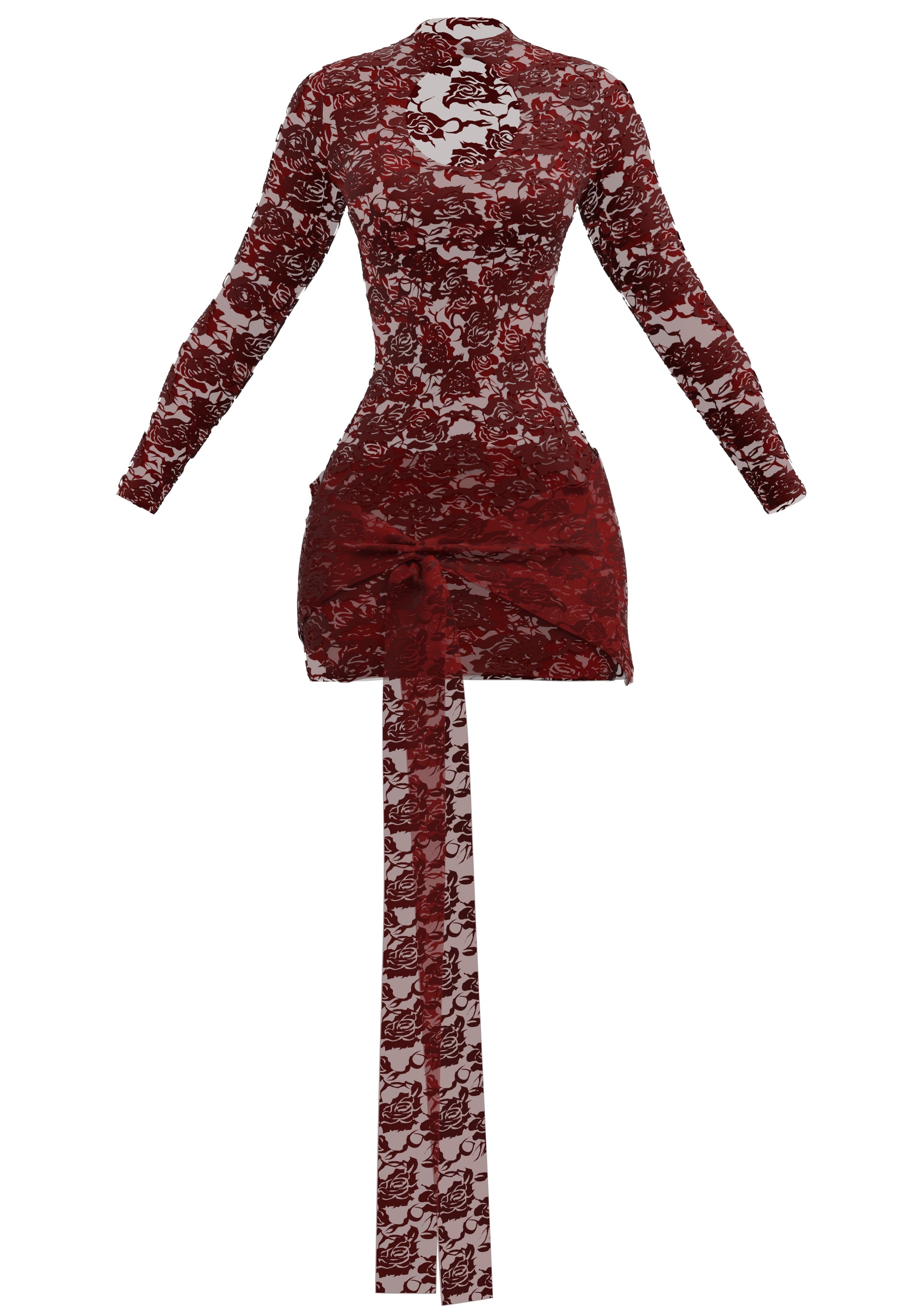 Step into the spotlight with the Gaia cutout dress, a captivating piece from our Meraki Collection that embodies elegance and allure. Crafted from exquisite deep red lace, this cut-out mini dress is designed to make a statement at any event. The dress features a delicate, intricate lace pattern that exudes sophistication and femininity. Double lined and stretchy. The front tie draping can be styled in several versatile and chic ways, allowing you to personalise your look and adapt it to different occasions.